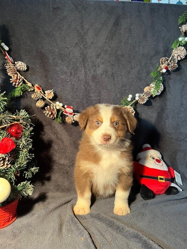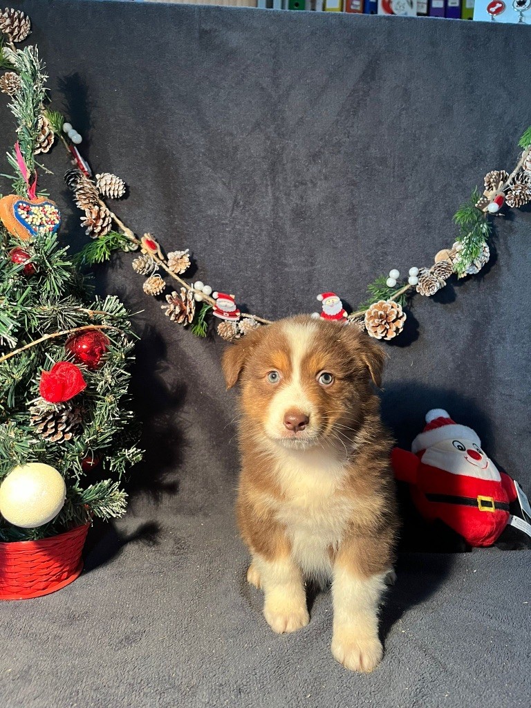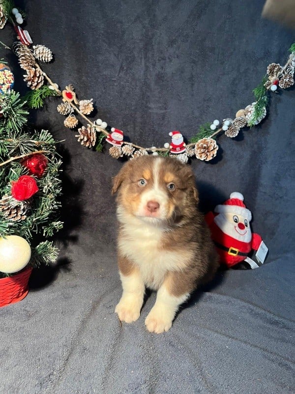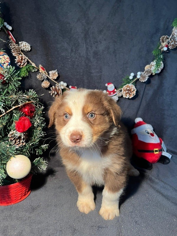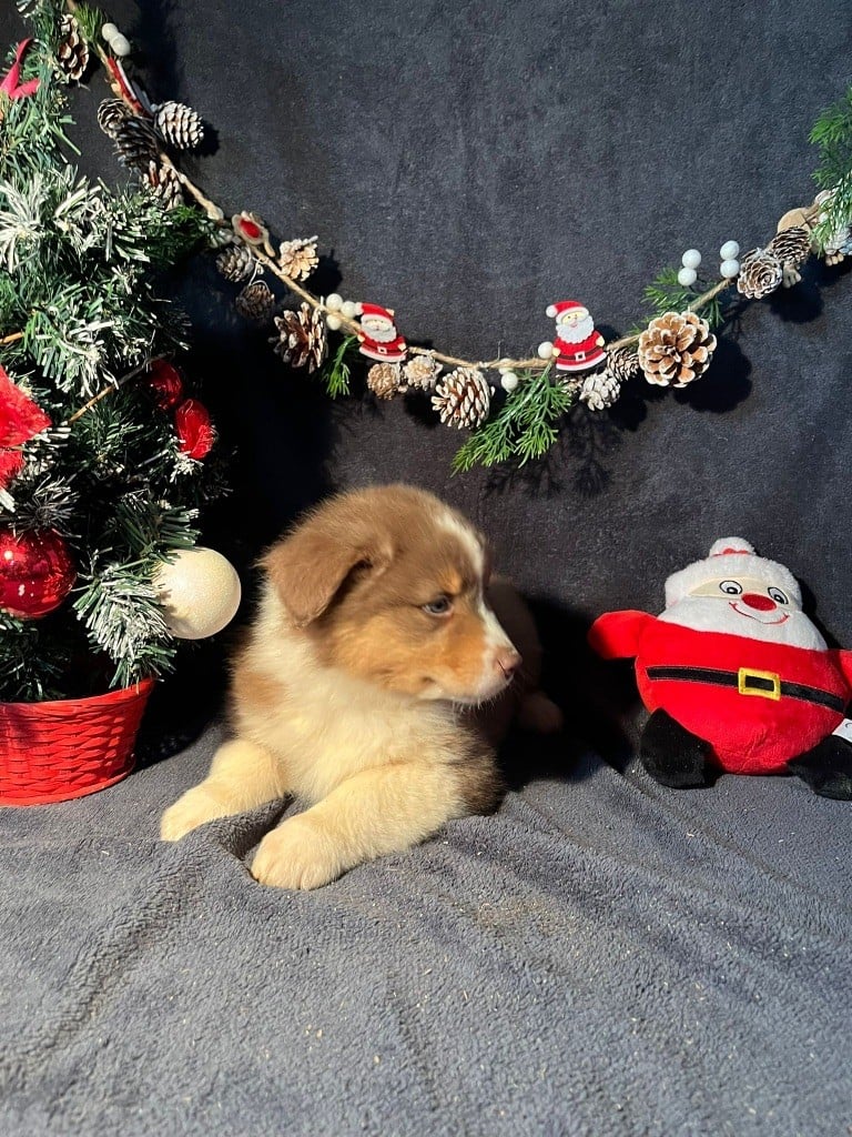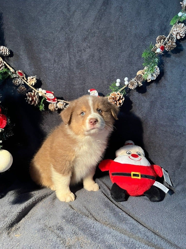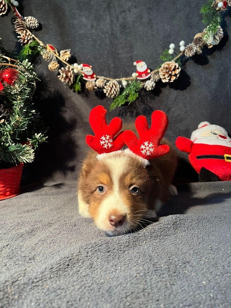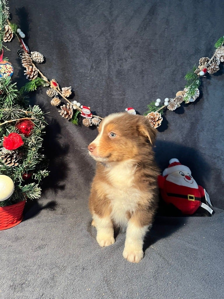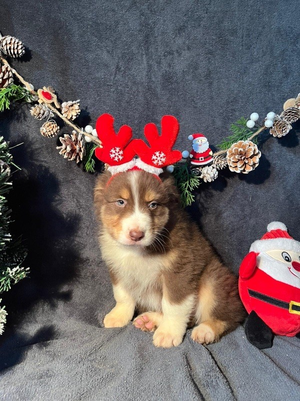 Parmi les femelles, nous avons 1 rouge merle queue longue, 1 rouge tricolore queue courte naturelle et 1 rouge tricolore queue longue.